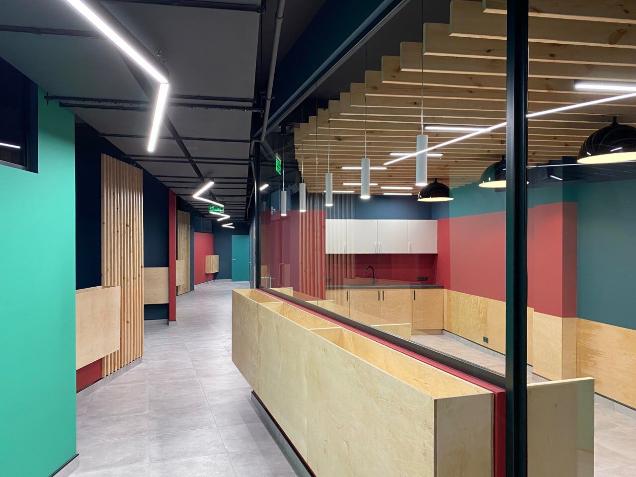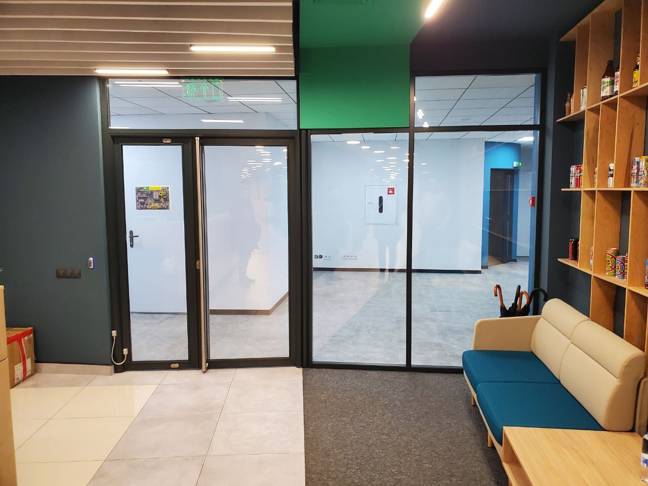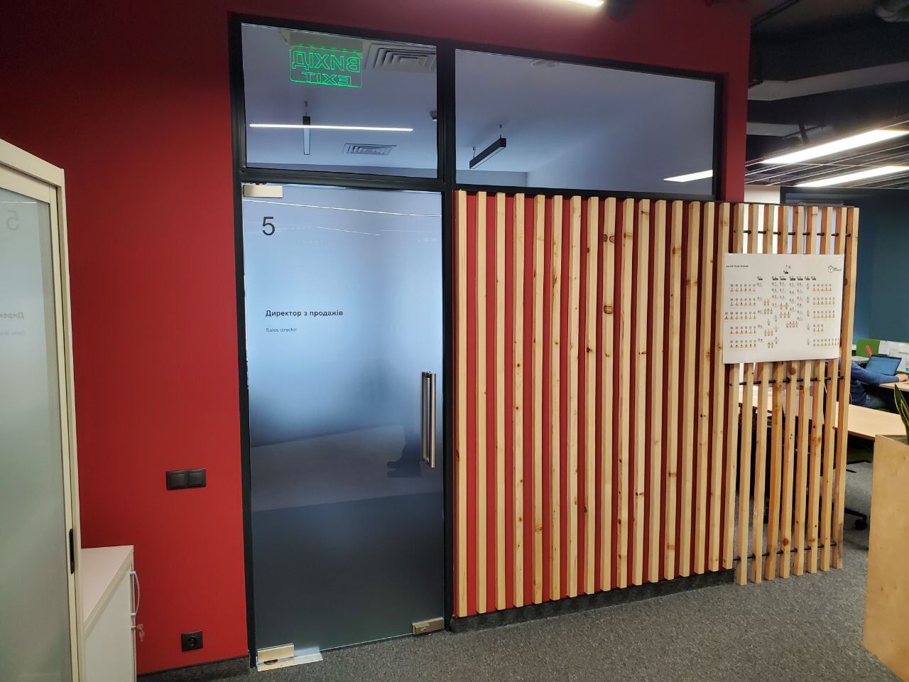 Входная группа исполнена в системе UALCOM-Standart. Офис был завершен перед началом полномасштабного вторжения, и сейчас уже полноценно работает ради победы. Делимся с вами этим проектом как примером, что можно не тратя большие деньги построить что-нибудь интересное.