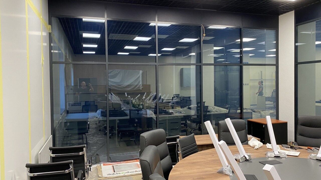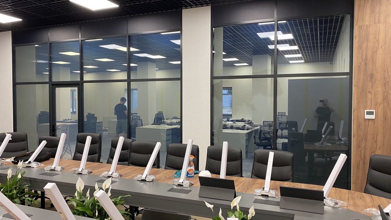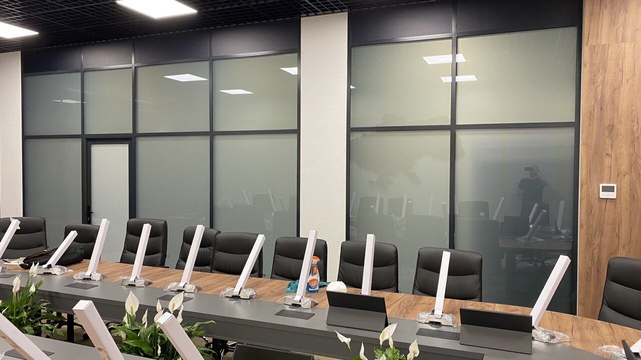 В результате конференц-зал заказчика превратился в управляемое частное пространство. Умное стекло Smart-Glass установлено в перегородки UALCOM-Standart и двери UALCOM-Vitrage2.