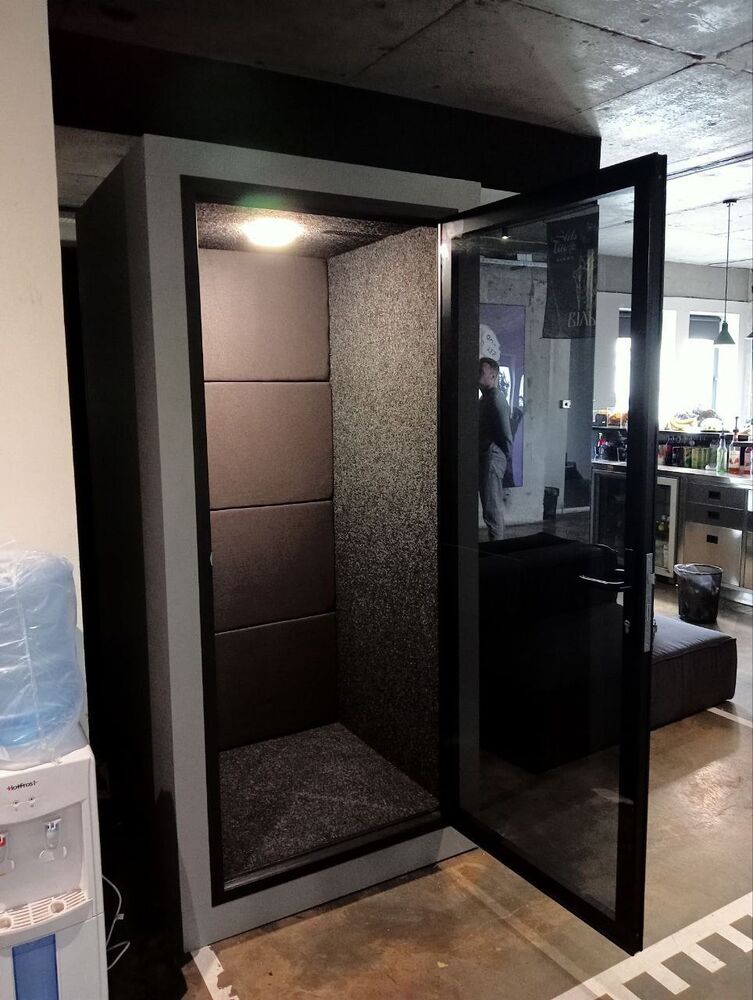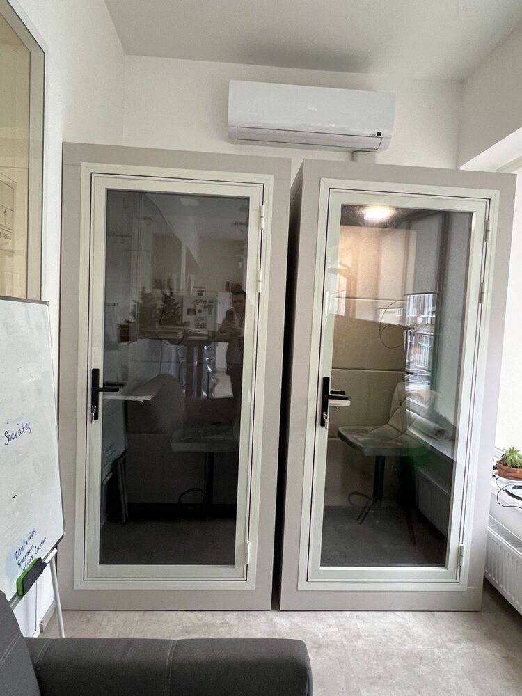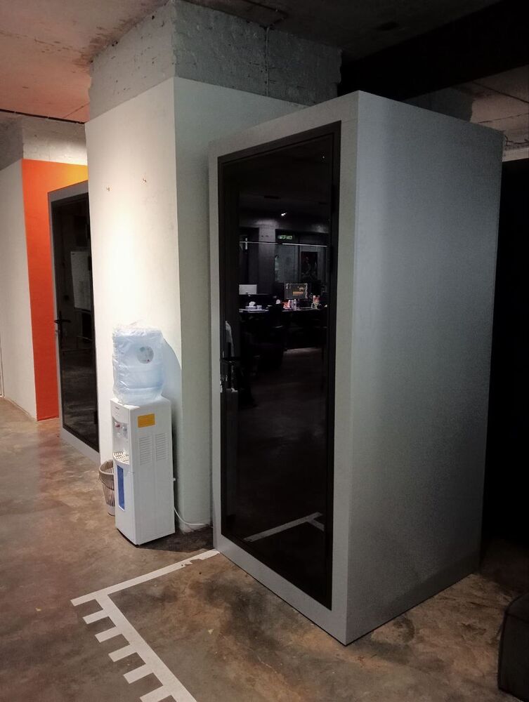 Учитывая это, нами был разработан новый для компании продукт – акустическая кабина. Такие кабины устанавливаются в современных офисах и позволяют быстро получить частное пространство для звонков, zoom или skype мифов, других целей, где требуется конфиденциальность. Кабины могут быть на одного, двух или четырех человек, таким образом можно создать как скайп-рум, так и мобильную переговорную комнату. Плюсом акустических кабин от компании UALCOM – простота конструкции, современный дизайн, мобильность изделия – кабину несложно переставить в пределах офиса, или перевезти в другое место, это не требует существенных затрат на общестроительные работы.