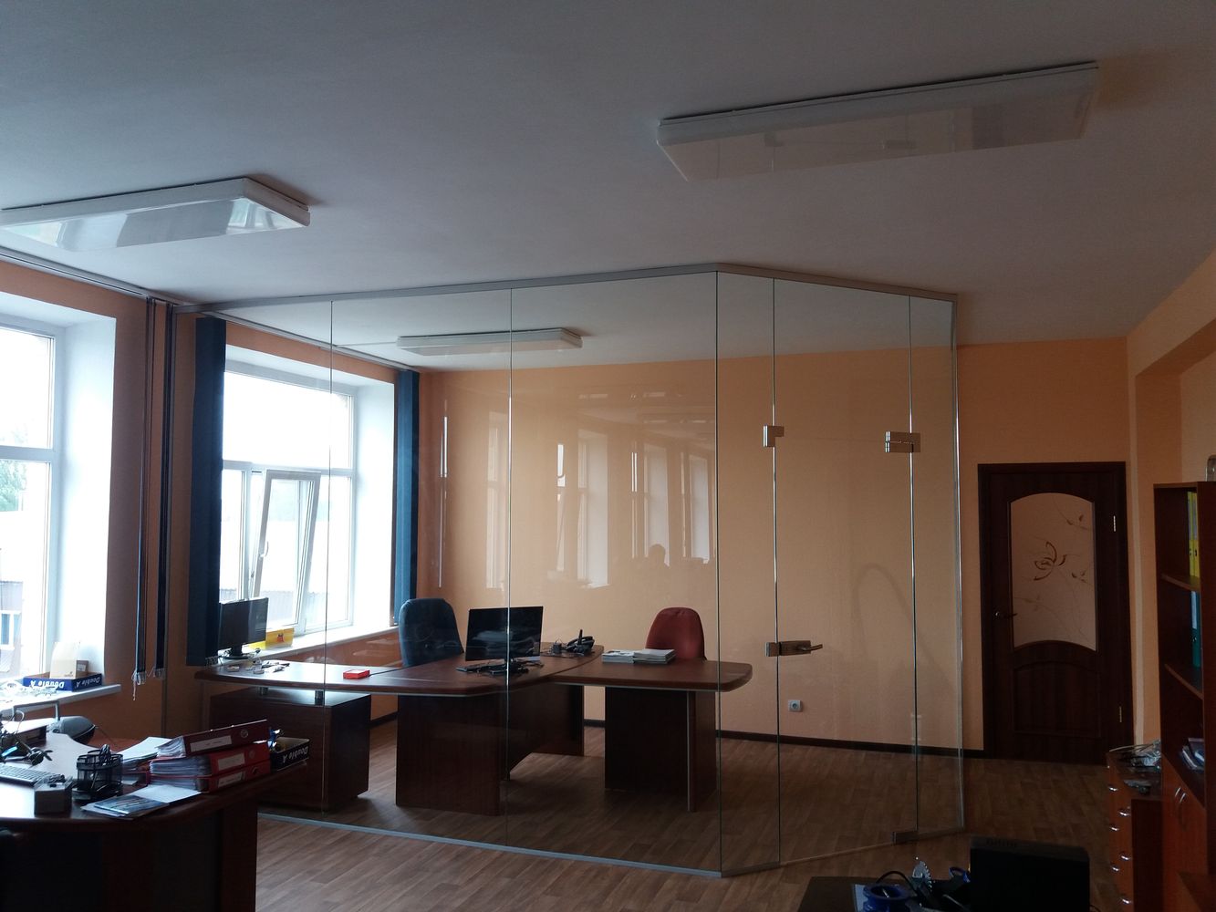 Компания UALCOM оформила стеклянным интерьером кабинет руководителя крупной торговой компании в г.Киев.