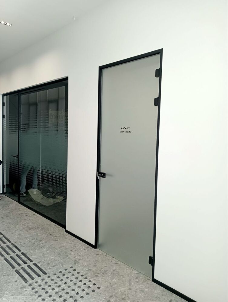Отдельное внимание было уделено акустическому комфорту. Опция цельностеклянных дверей в раме с притвором обеспечивает оптимальный уровень звукоизоляции, что является важным фактором для банковских отделений и офисов с повышенными требованиями к конфиденциальности.