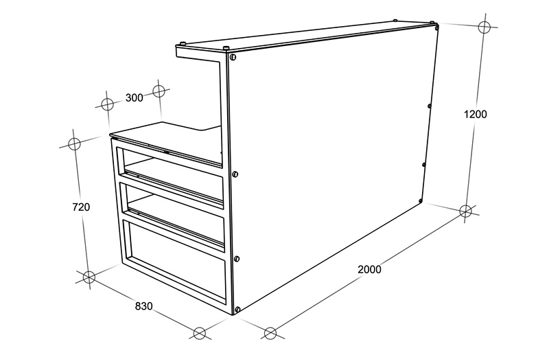 • Рабочие поверхности - стекло сатинато закаленное 10мм на крепежах из нержавеющей стали