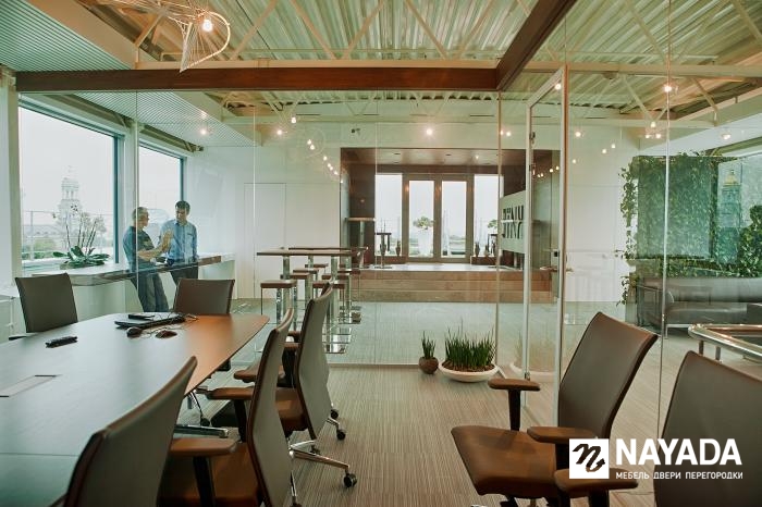 Также в офисе компании МТС Украина были установлены перегородки UALCOM-SmartWall, которые избавляют от необходимости обзаводиться дополнительными помещениями, позволяя использовать одно и то же пространство для различных целей. Например, раздвижная перегородка UALCOM-SmartWall поможет разделить или соединить два различных по функциональному назначению помещения , отградить пространство для заседаний, приемов или банкетов.